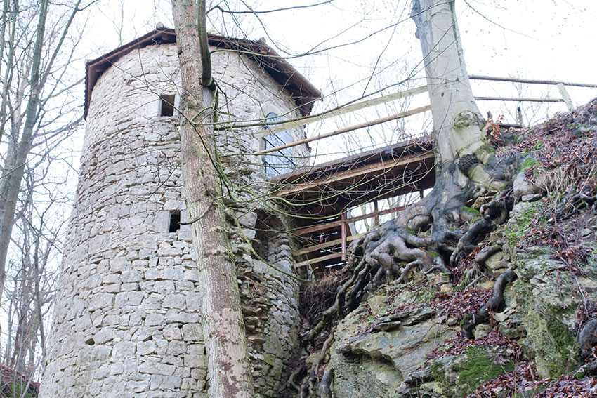 Neues Treppenhaus im Bergfried (Blick nach oben).